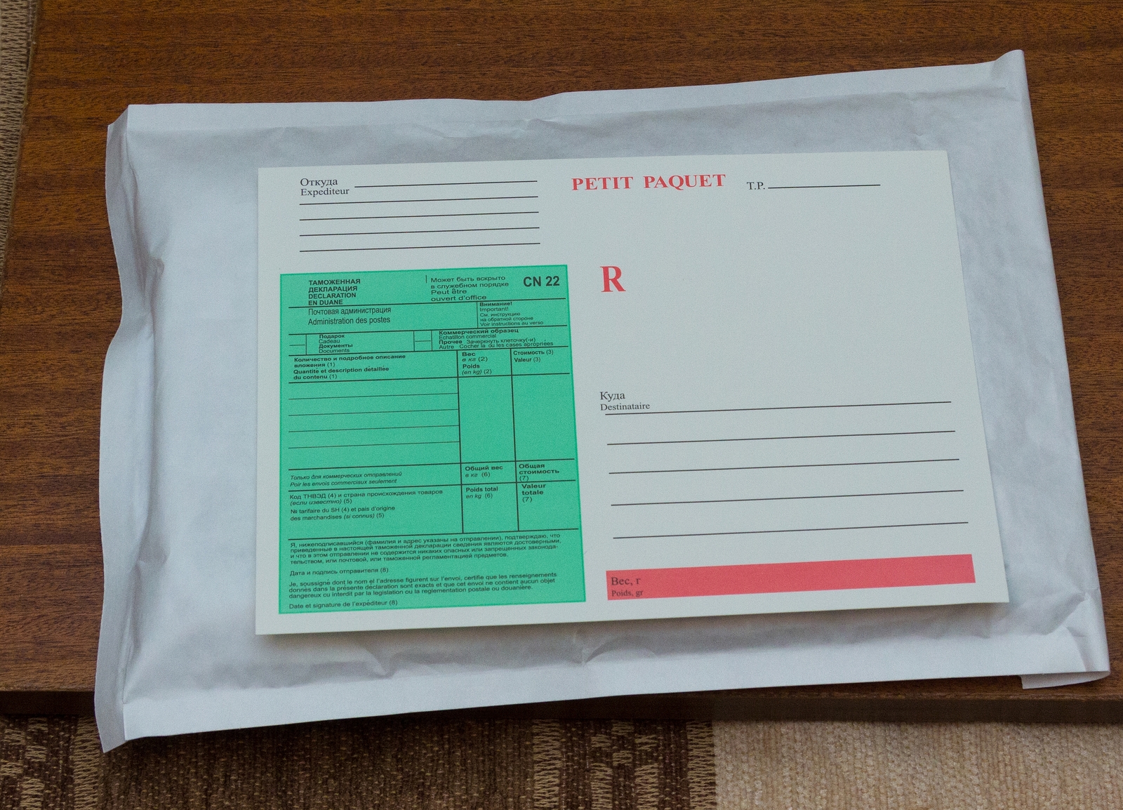 После тщательной подготовки конфергта, следующий шаг, визит в ближайшее отделение Почты России: