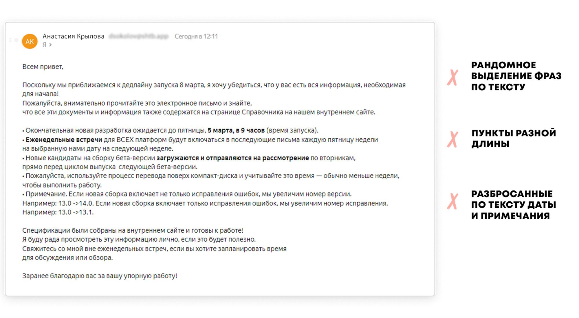 - Ясность и краткость, не перегружайте текст лишними деталями, будьте лаконичны.